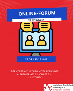 Das Online-Mitglieder-Forum bietet unseren Mitgliedern die Möglichkeit, in direkten Austausch mit dem Vorstand zu treten. Als Selbsthilfeorganisation ist es uns wichtig, nicht nur Angebote für Angehörige und Menschen mit Demenz bereitzustellen, sondern auch Rückmeldungen, Bedarfe ...